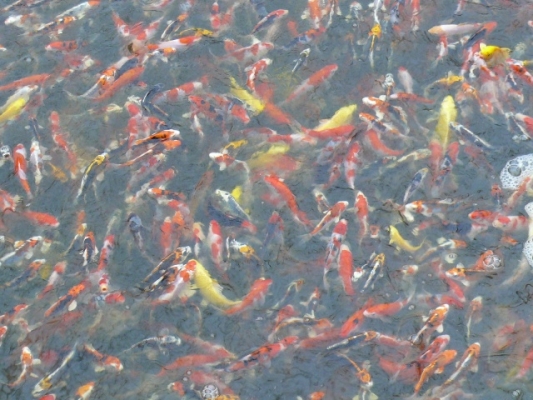 Ikarashi züchtet Kujaku, Yamatonishiki, Chagoi, Benikikokuryu, Koromo, Goshiki and Ochiba, etc.
