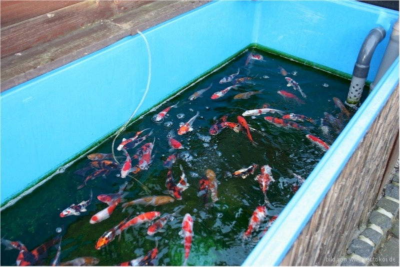 Eigene Quarantänestation. Alle Koi frei von Parasiten, regelmäßige KHV Untersuchungen. Von hier kommen gehälterte Koi für Handel und Privat.
